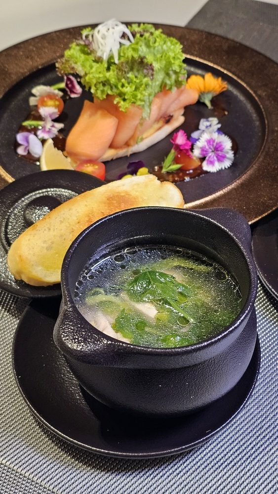 As the soups were served, the Creamy Curry Roasted Pumpkin Soup stood out for its rich, velvety texture. The roasted pumpkin brought a natural sweetness, which was elevated by a gentle hint of curry spice. The soup was comforting and hearty, with the perfect amount of heat to keep things interesting without overwhelming the palate. For those seeking a lighter option, the Umami Forest Consommé offered a clear, elegant broth that was bursting with umami goodness. The flavors were nuanced and earthy, reminiscent of a tranquil forest setting, making it a soothing and satisfying prelude to the main courses.