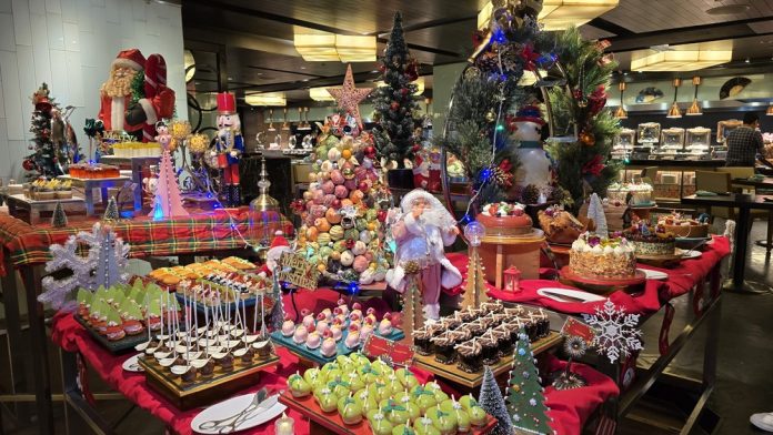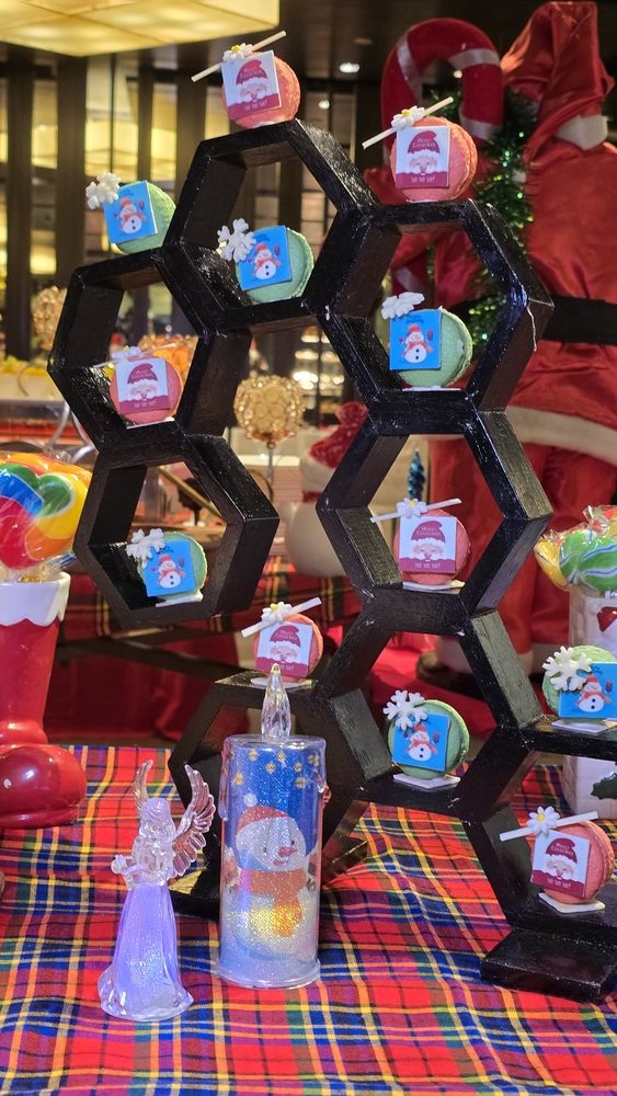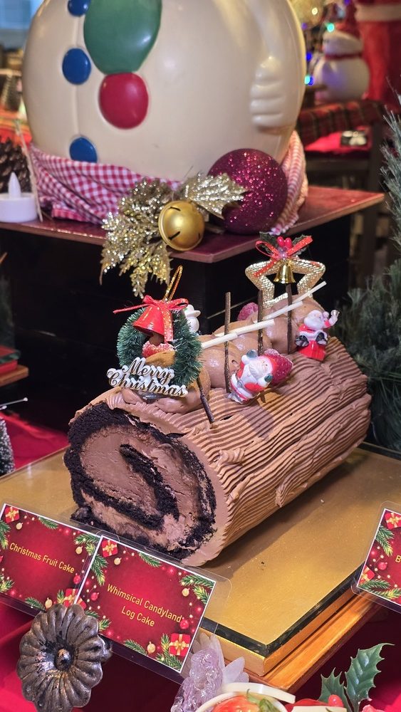 Meanwhile, Bistro 160’s Whimsical Gingerbread Tuck Shop is pure festive fantasy. Imagine rows of Cinnamon Star Cookies, Chocolate Macaroons, and mini Log Cakes, each beautifully handcrafted. The Gingerbread Santa and Christmas Popsicles will delight children and adults alike — both charming to look at and delicious to taste. The Stollen and Fruit Cake capture the warmth of traditional Christmas flavours, dense with dried fruits and spices that fill the room with nostalgia.