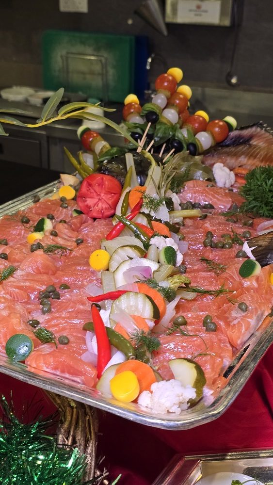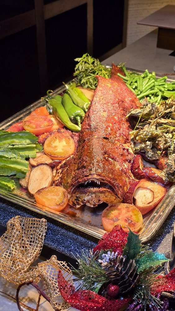 Stepping into The Mill Café during Christmas feels like entering a storybook scene — the scent of roasted meats, the shimmer of holiday décor, and a buffet that seems endless. The Roasted Turkey is a centrepiece in itself — perfectly golden with crisp skin that crackles under the knife, revealing moist, tender meat beneath. The cranberry sauce adds a tart lift, while the rich giblet gravy completes that comforting festive balance.