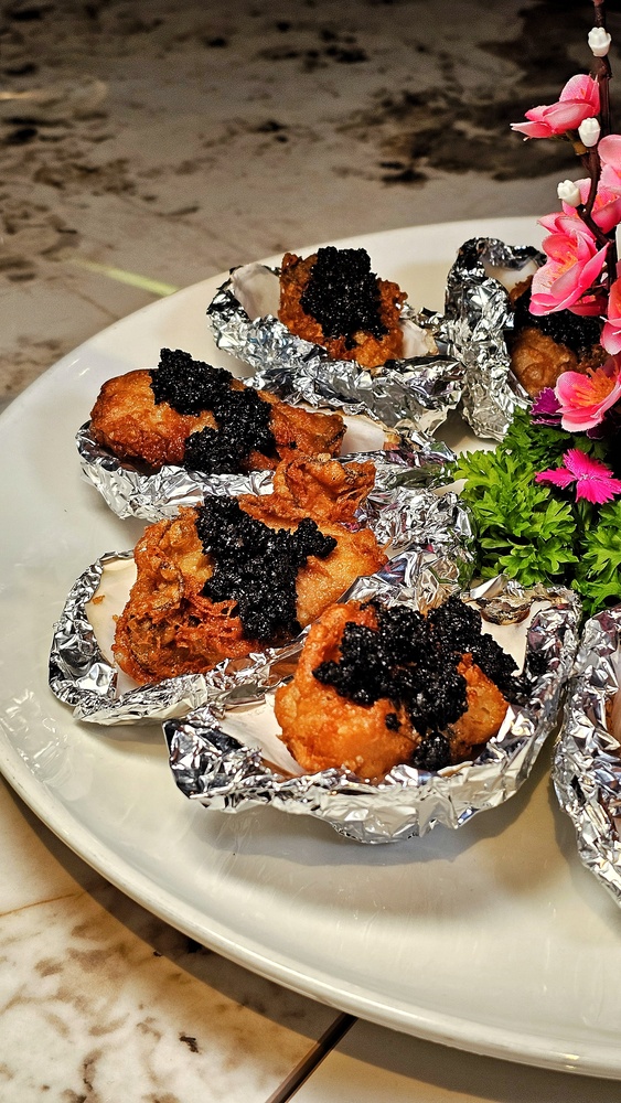 Among the signature dishes, the Deep Fried Sakura Shrimps Pancakes stand out with their crisp texture and rich flavor, a perfect start to your meal. The Steamed Nyonya Style Dragon King Grouper Fish in Slice offers a delicate balance of flavors, with the freshness of the fish shining through a subtle Nyonya sauce. Another highlight is the Deep Fried Canadian Oyster with Black Truffle, a luxurious dish where the earthiness of the truffle perfectly complements the briny sweetness of the oyster.