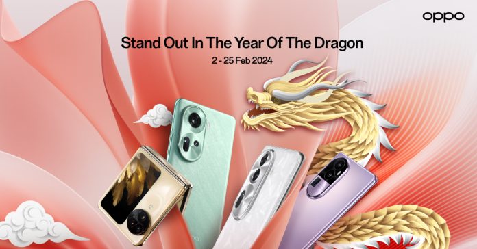 OPPO Malaysia is thrilled to announce its exciting Stand Out In the Year of the Dragon Chinese New Year promotion set to run from 2nd to 25th February 2024. Embracing the festive spirit, OPPO is offering exclusive deals worth up to RM400 to make this Lunar New Year even more prosperous and joyful for its customers.