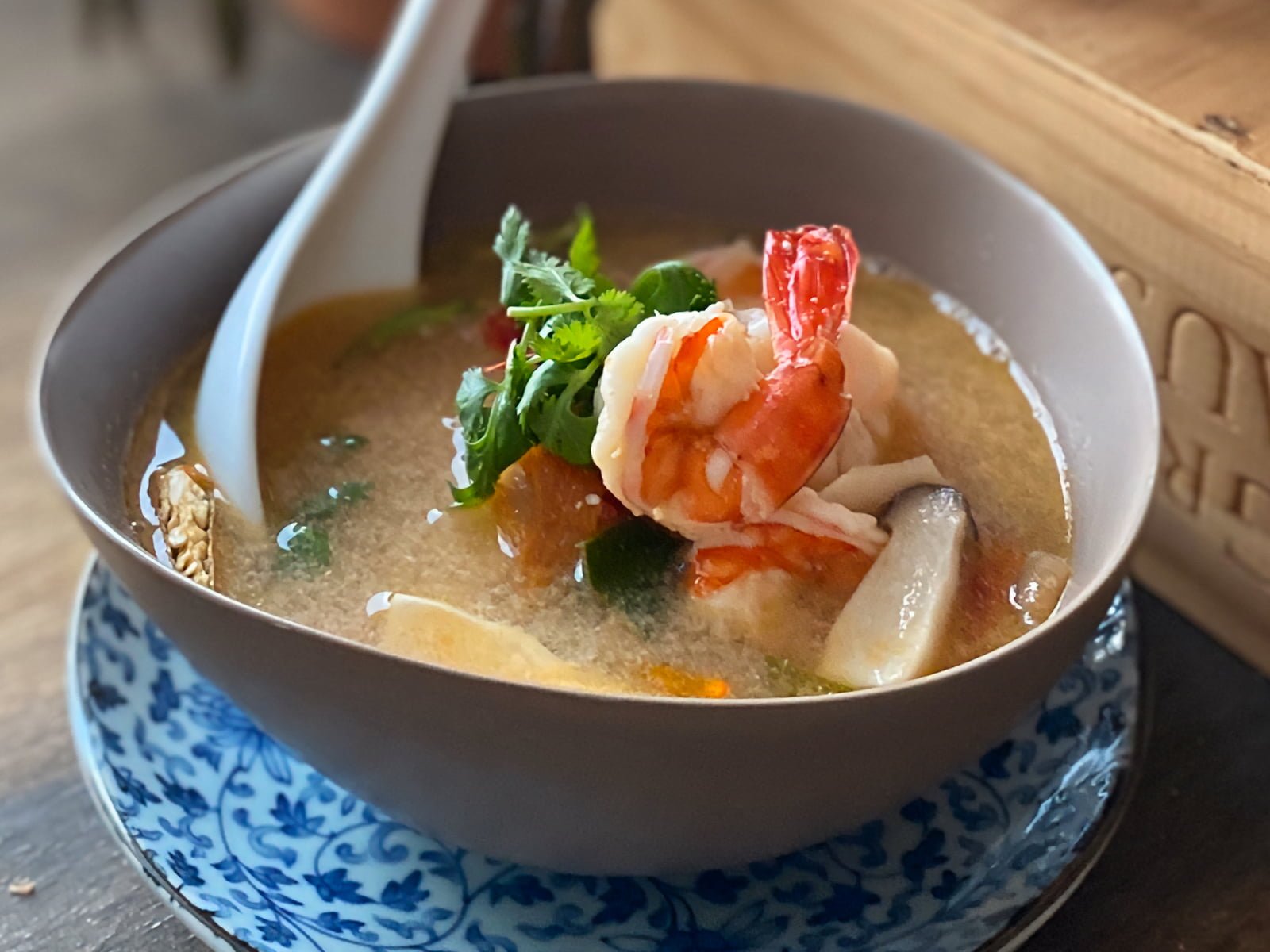 2) Tom Yum Goong (hot, spicy and sour Thai soup with prawns) by Chef Ko