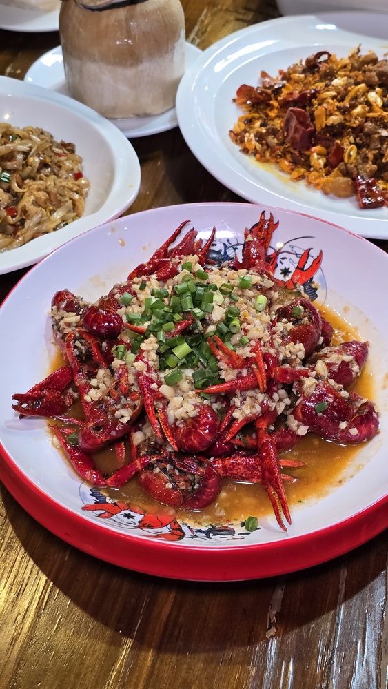 Hunan Garlic Crayfish – aromatic and garlicky, with the spice creeping in slowly, making each peel-and-bite session worth the mess.