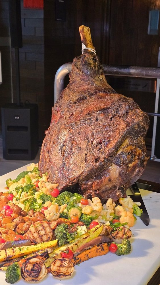 The dramatic Thor Hammer Beef — a large beef shank — is fall-off-the-bone tender with gelatinous richness enveloped in a savoury glaze.