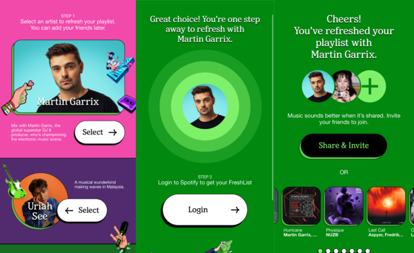 2. Select your favorite artist or invite friends to refresh your playlist.