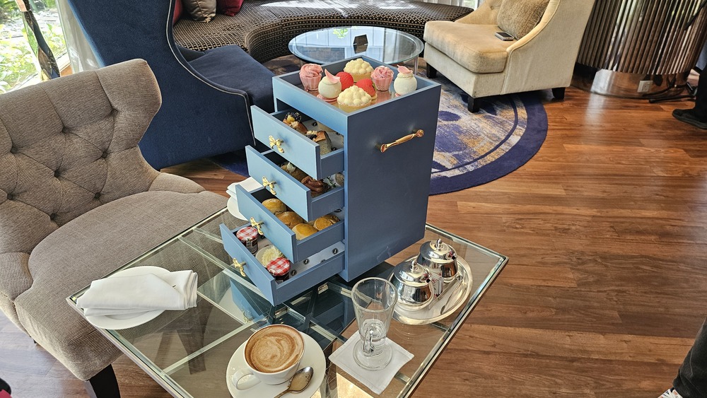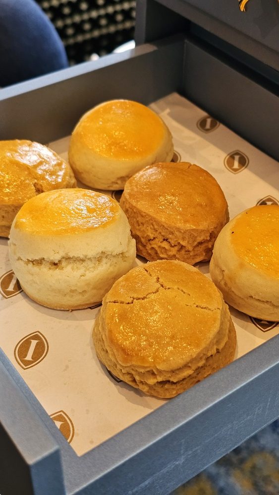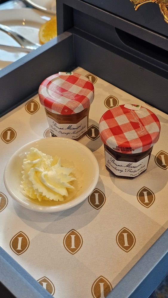 The experience continues with Plain and Salted Egg Yolk Scones, served alongside premium clotted cream, jams, and marmalade, offering a perfect balance of taste and texture.