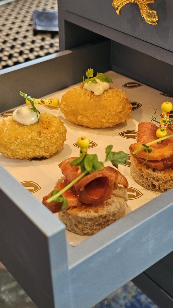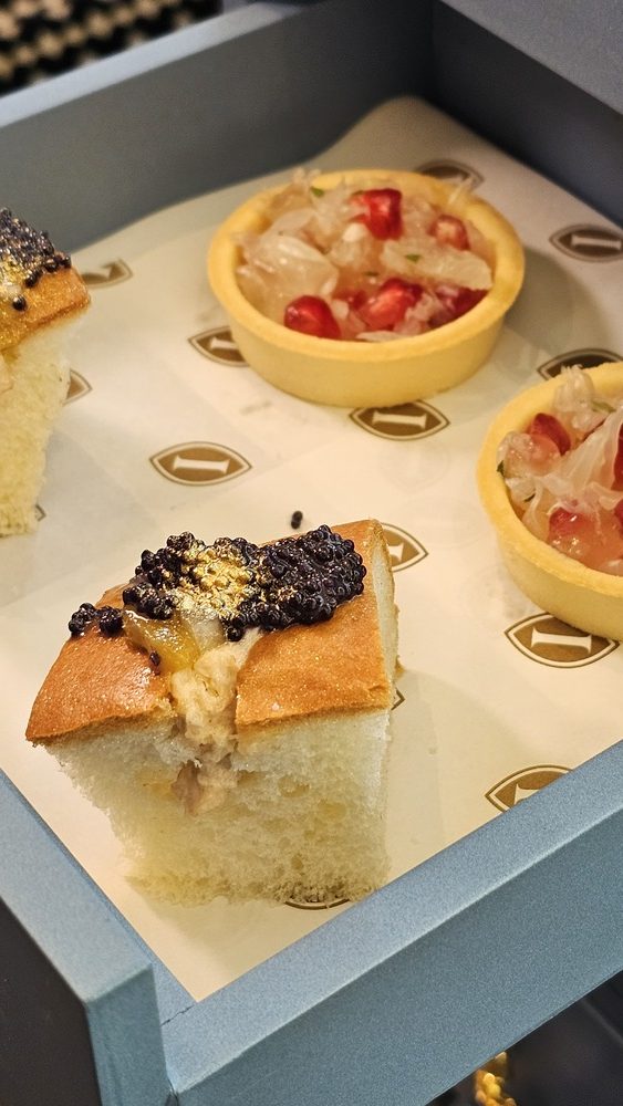 The culinary journey begins with a selection of savoury delights, including Classic Crab Mango with Black Caviar in Brioche, Glazed Barbequed Smoked Duck on Rye, Aloe Vera, Pomelo & Pomegranate Salsa with Savoury Tartlet, and Pumpkin Taro Cheese Croquettes with Truffle Mayonnaise—each bite a harmonious blend of exquisite flavours.