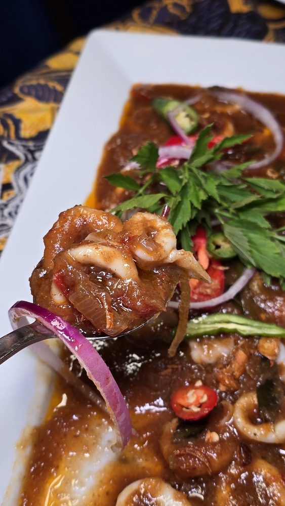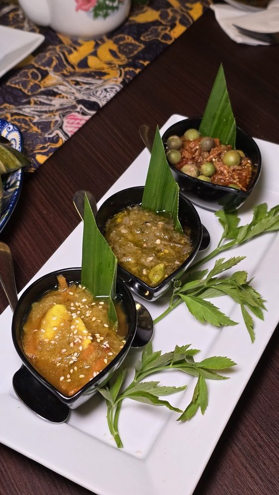 Masak Lemak Sotong Tender squid is cooked in a creamy, spicy coconut gravy, offering a luxurious contrast to the fiery sambals that accompany the meal. The dish is both comforting and indulgent, with the coconut milk providing a rich backdrop to the spices. Sambal Platter A trio of sambals—Sambal Belacan, Sambal Tempoyak, and a house-made variant—adds layers of heat and depth to the meal. Each sambal brings its unique flavor profile, allowing diners to customize their dishes to their preferred spice levels.