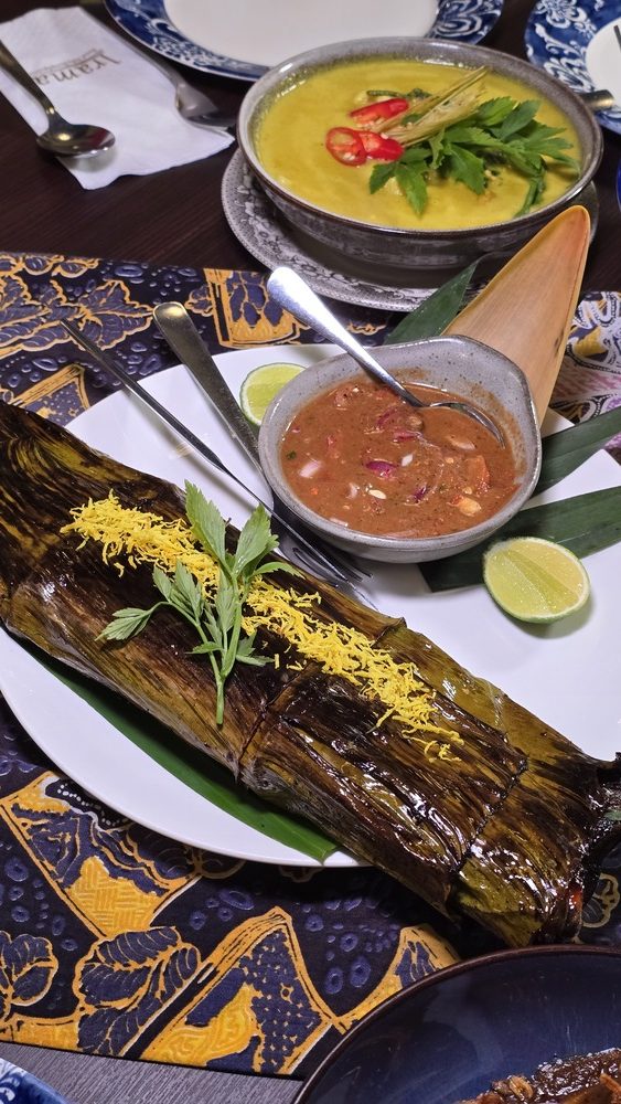 Pais Barramundi A standout dish, the barramundi is marinated with turmeric, shredded coconut, and chili padi, then wrapped in banana leaves and grilled to smoky perfection. Each bite delivers a harmonious blend of spice, sweetness, and a subtle smokiness that lingers pleasantly on the palate. Ayam Kerutup This slow-cooked chicken dish is simmered in a rich coconut milk base, infused with kerisik (toasted grated coconut) and local herbs. The result is a creamy, flavorful dish that showcases the depth of Malay culinary traditions.