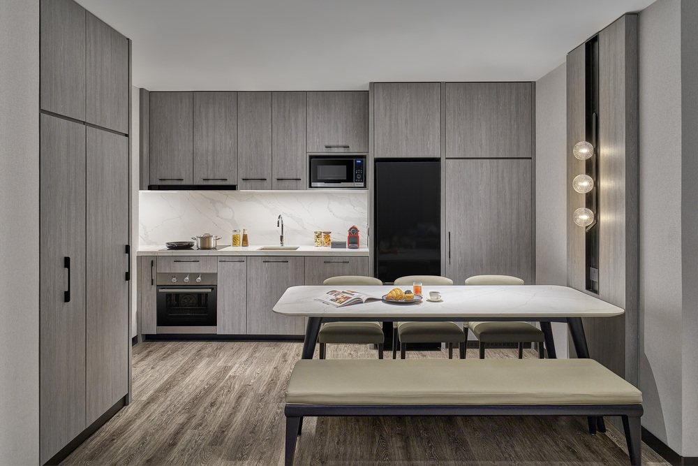 Marriott Executive Apartments Penang boasts 90 elegantly designed suites, featuring a mix of one-bedroom and two-bedroom options. Whether traveling alone or with family, guests have varius options to choose from to suit their needs. Each suite is thoughtfully furnished and equipped with a fully functional kitchen, complete with a clothes washer and dryer, alongside a spacious living room. Catering to the needs of business travelers, vacationers, and those seeking rejuvenation alike, guests will appreciate the blend of comfort and sophistication that defines the brand experience. Whether staying for a night or an extended period, the apartments provide a homely atmosphere with the perks of a hotel.