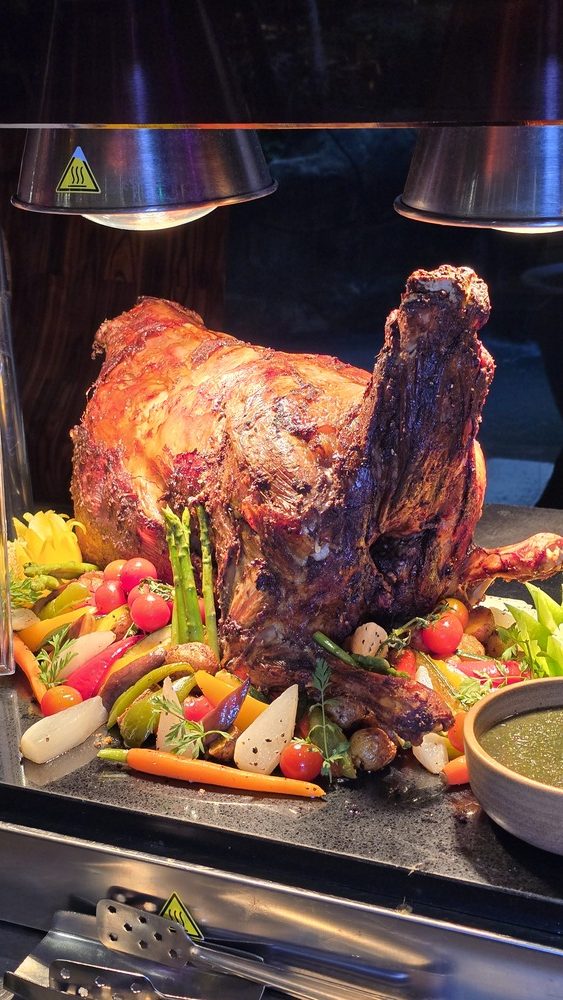 Beyond these signatures, the buffet expands into a celebratory spread. Live and carving stations add theatre, with highlights such as Afghan Whole Lamb, its meat tender and well-seasoned, alongside roasted orange honey glaze chicken and yellow pepper barbecue beef brisket. Traditional accompaniments—Lemang, Ketupat Bawang, Beef Rendang Tok, Serunding Ayam and Bubur Lambuk—reinforce the sense of familiarity, while a premium seafood selection featuring fresh tiger prawns, oysters and seasonal catches elevates the experience without straying from its roots.
