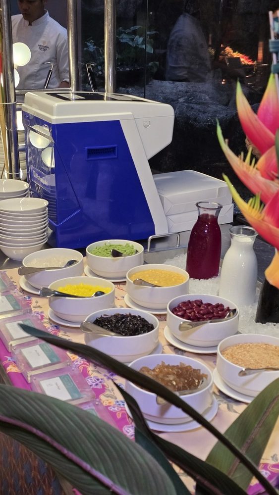 The hotel’s approach is deliberately intimate. Rather than chasing novelty, the culinary team anchors the experience in memory—food that reminds diners of family kitchens where traditions were preserved and stories shared. Under the guidance of Executive Chef Rudy Junaidie, the buffet respects these roots while presenting them with the polish expected of a five-star setting. Even the presence of a live demonstration by “Nana” reinforces this narrative, offering a gentle reminder of how these dishes were once prepared and shared.