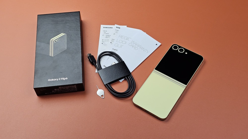 Opening the sleek packaging, you are greeted with the Galaxy Z Flip 6, neatly nestled at the top. The box includes: