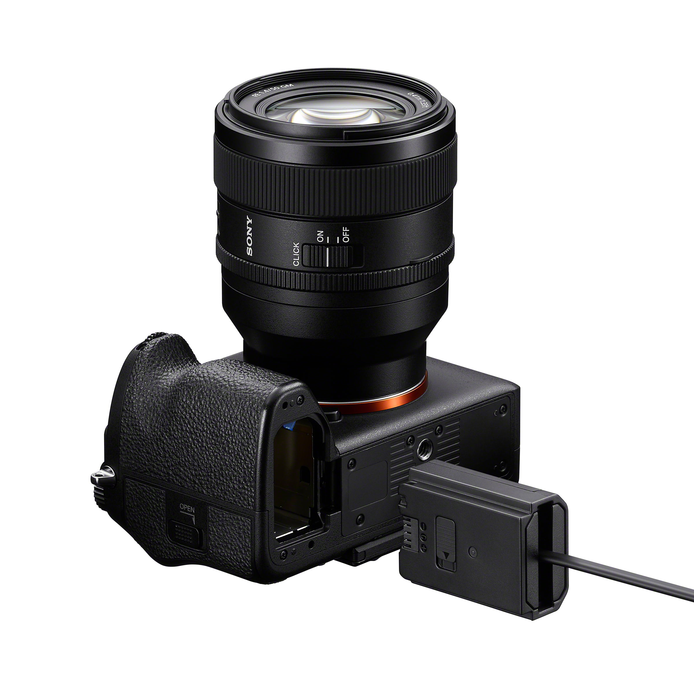 The DC-C1 DC coupler provides continuous, reliable power to cameras compatible with NP-FZ100 or NP-FW50 rechargeable battery packs using an external power source such as a USB PD (65 W or more) compatible AC adapter and USB cable with USB PD support (5 A), allowing for a stable power supply during long shoots or streaming.