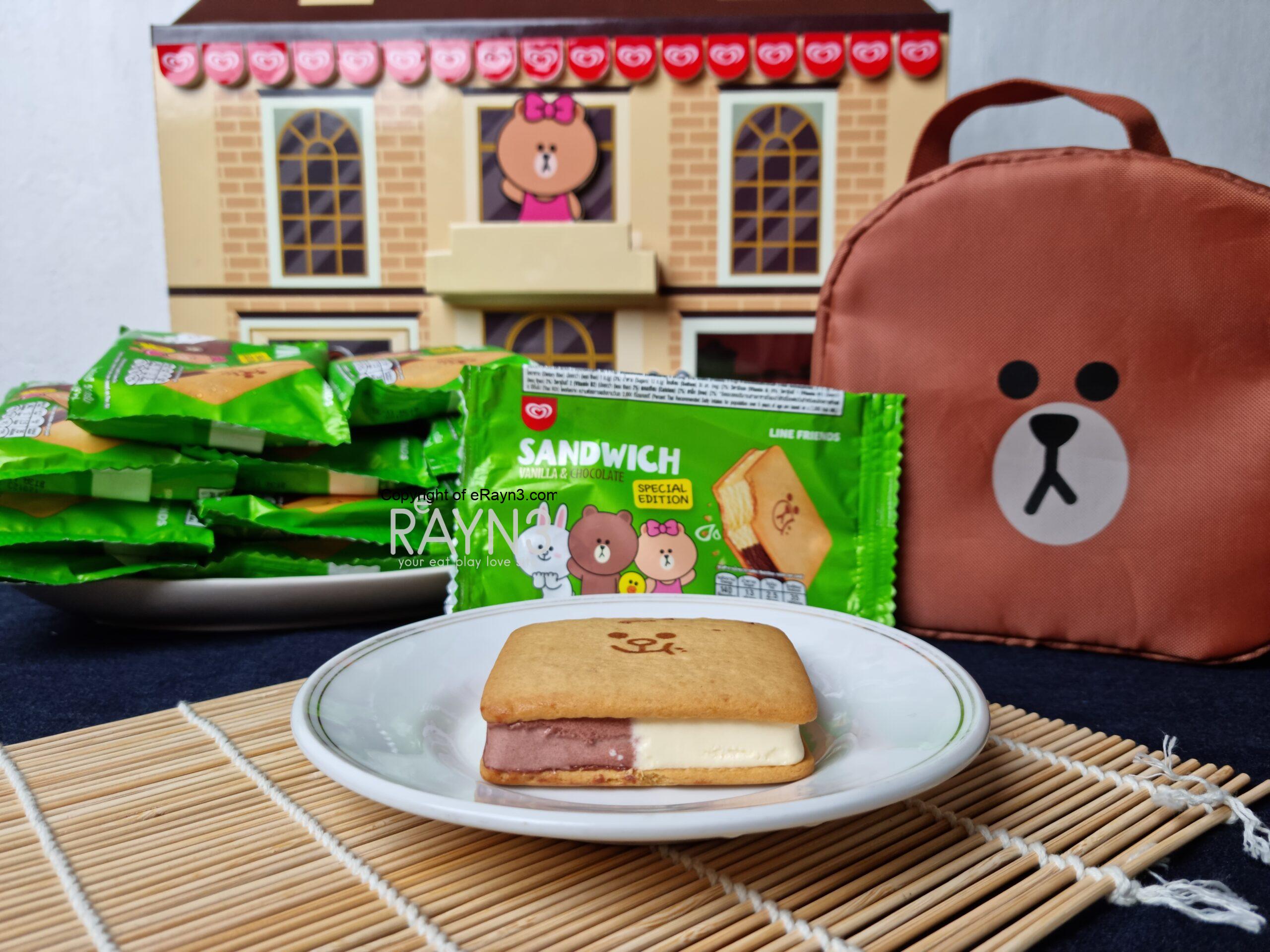 With its cute packaging featuring the LINE FRIENDS characters against the backdrop of a bright, eye-catching green, that unravels to a perfect pairing of vanilla and chocolate flavors, which from the ice confection heart, sandwiched between two soft biscuits.