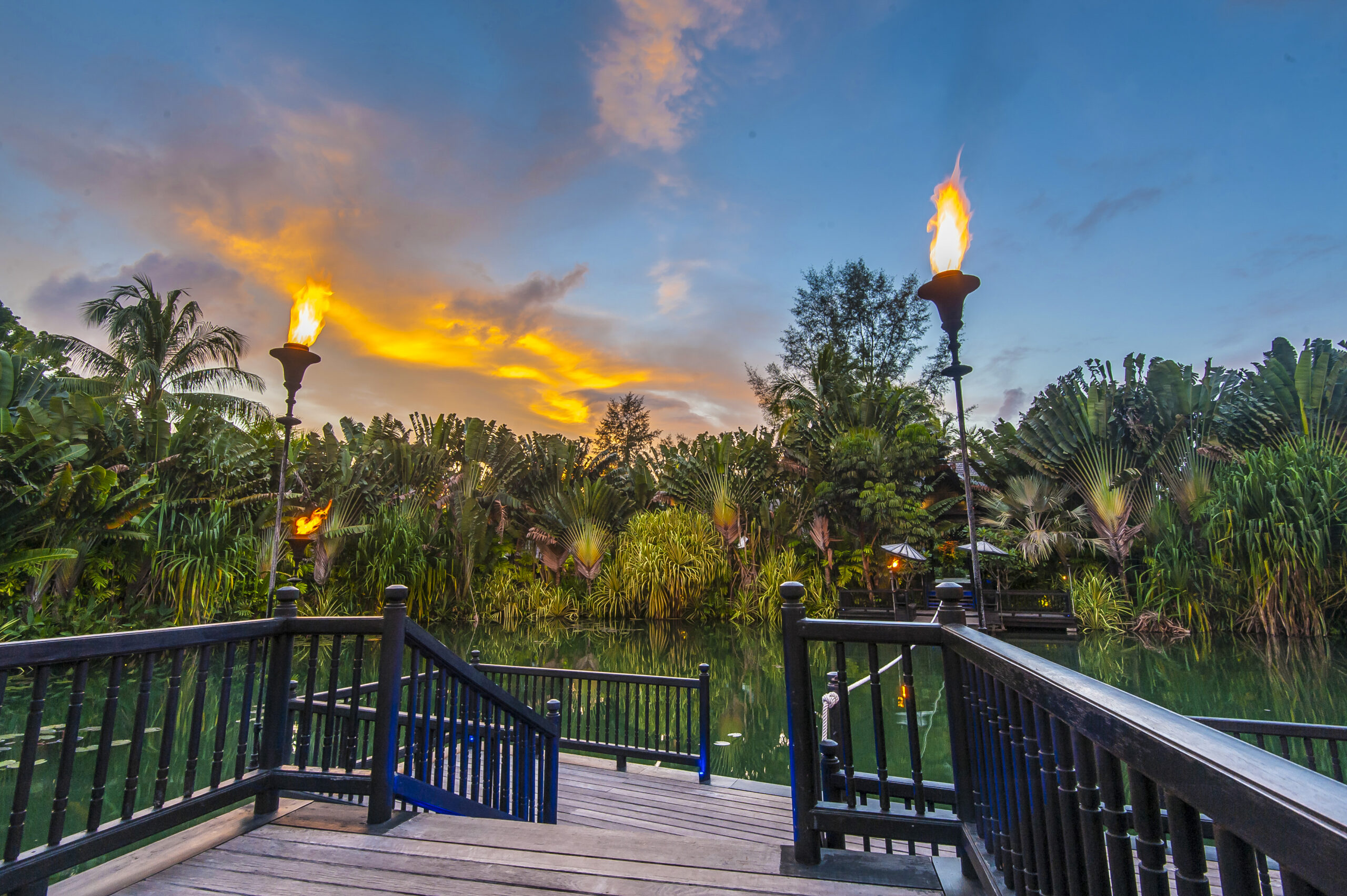 The epicurean adventure continues with a complimentary three-course dinner at Black Ginger**, the award-winning Thai restaurant that specialises in highly authentic local cuisine and has been recommended by the Michelin Guide. A masterpiece of traditional Thai architecture, it appears to float above a tranquil lagoon and is only accessible by wooden raft!